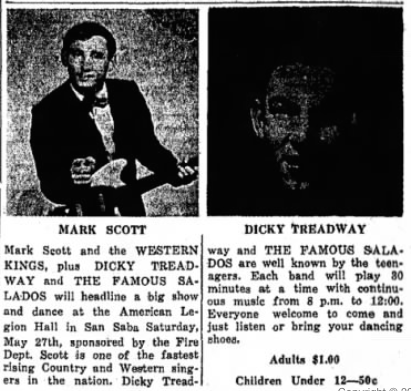 Dicky Treadway with a mystery band labeled as The Salados. Who were these guys? Was Mark Scott in that band?
